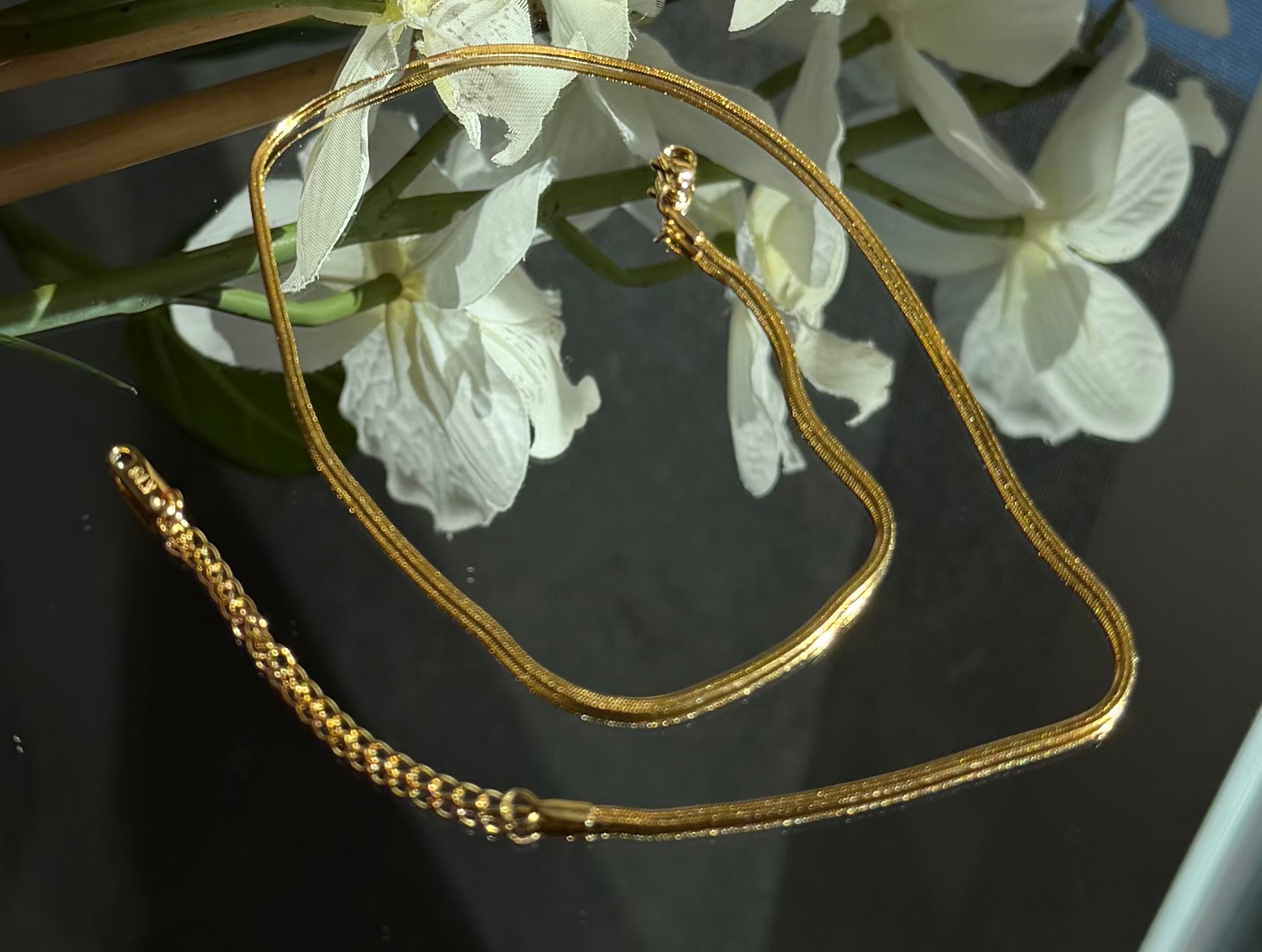 Elevate your everyday style with our Gold Plated Stainless Steel Herringbone Necklace. Featuring a sleek flat chain that catches the light beautifully, this timeless piece is perfect for layering or wearing solo. With its adjustable length, it pairs effortlessly with any neckline for both casual and dressy looks.