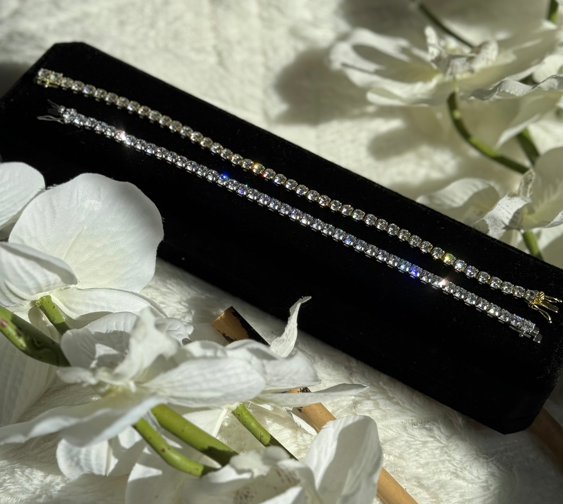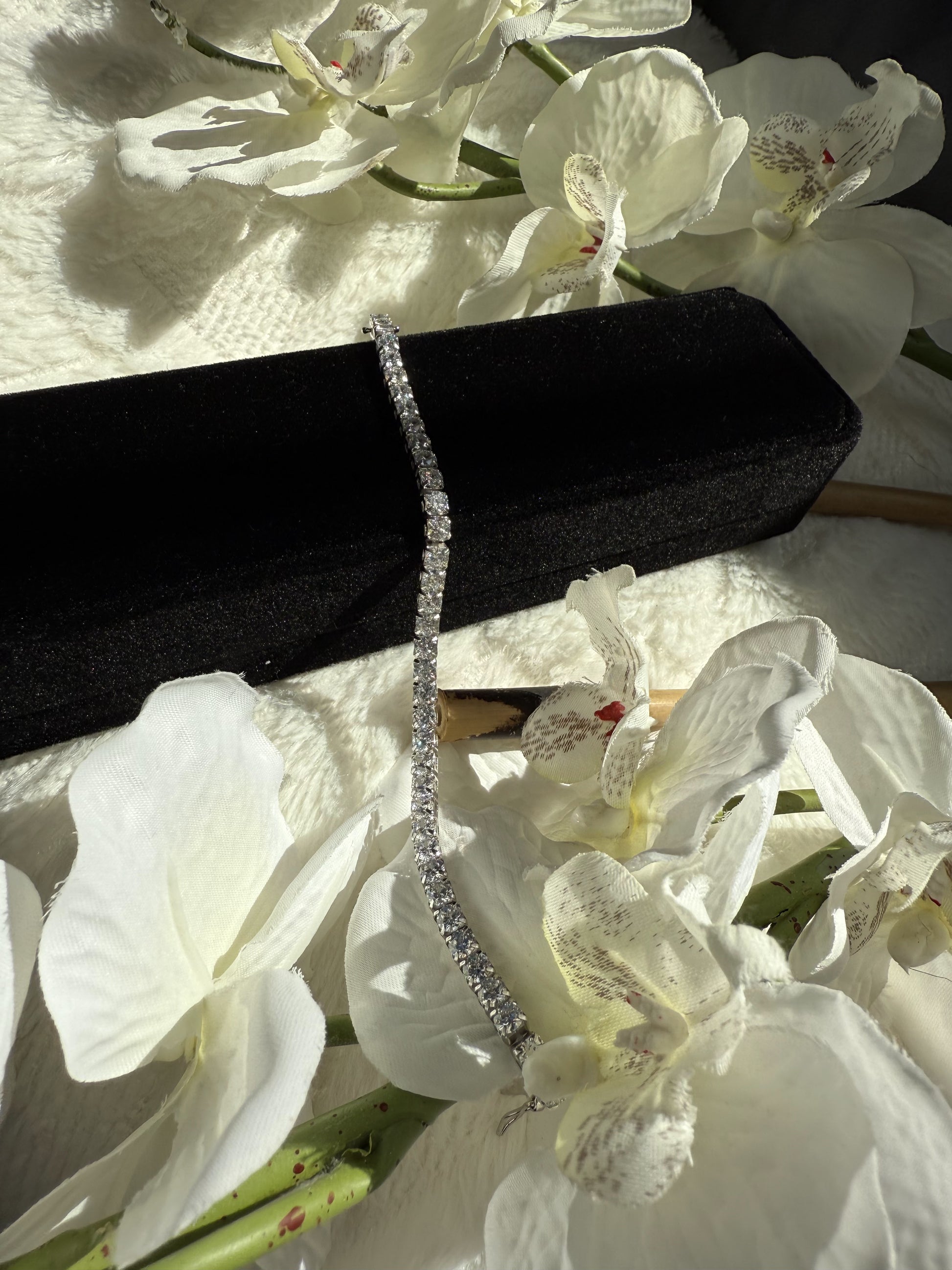 Add timeless sparkle to your look with this sterling silver tennis bracelet. Featuring 4mm brilliant zircon stones in a classic line design, this bracelet is 19cm long and secured with a sturdy lobster trigger clasp. Perfect for daily wear, layering, or gifting, it’s a versatile piece of dainty yet elegant jewelry that shines for every occasion.